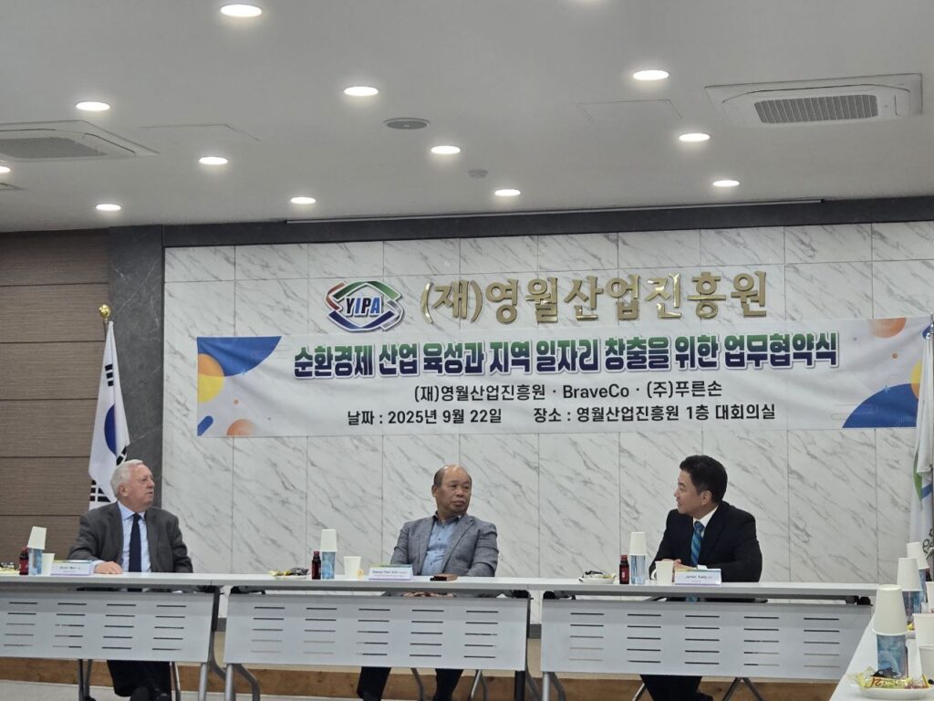 푸른손(대표 제임스 강)은 22일부터 24일까지 강원도 영월에서 열린 ‘2025 국제 광물 포럼’에서 호주의 그린디스틸레이션테크놀로지(GDT)·브레이브코(BraveCo)·와 폐타이어 재활용 라이선스 계약을 체결했다고 25일 밝혔다.